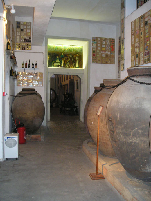 Aqui estão expostos, entre outros objectos, 1 conjunto de 5 talhas alentejanas em barro, a mais antiga datada de 1620, 2 prensas manuais com cincho em madeira, 1 prensa de vara e fuso, 2 prensas hidráulicas, 1 elevador de cascaria (modelo único) construído para funcionar nesta adega e um muito antigo e raro exemplar de esmagador-desengaçador.